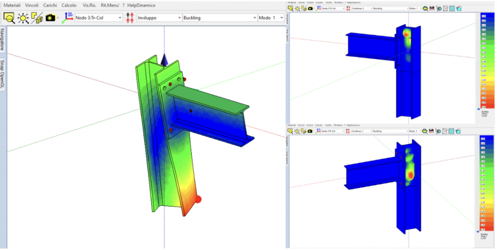 Gli utenti possono determinare i modi di buckling associati alle diverse combinazioni di carico e introdurre imperfezioni geometriche nel nodo, definite come singoli modi di instabilità o come combinazioni lineari di più modi, tramite coefficienti personalizzabili.